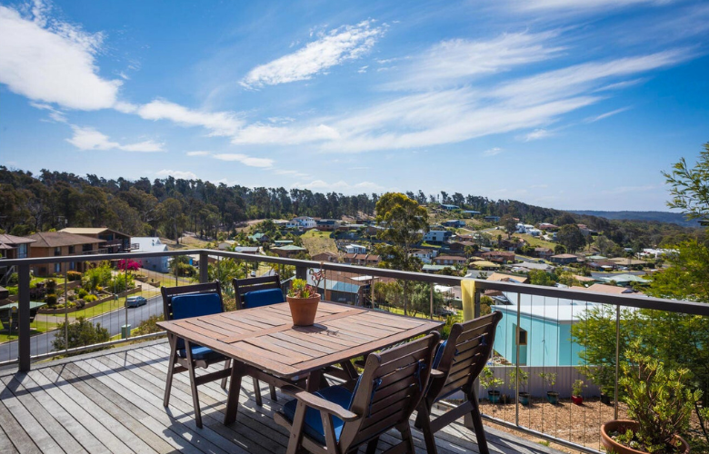 One special thing about the Tathra Project is how it blends right in with the beautiful scenery around it. There's a spacious north-facing Merbau deck that allows our clients to soak up the sun and enjoy amazing views of the ocean and coastline. It's the perfect spot for quiet mornings with a cup of coffee or magical evenings watching the sunset. This aspect of the home was pivotal in the decision to make the design two-storey, ensuring we could incorporate this outdoor living space seamlessly.